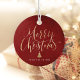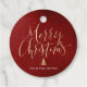 Les étiquettes de cadeau de Noël personnalisées présentent une fausse feuille d'or avec une calligraphie manuscrite "joyeux Noël" et un arbre sur fond rouge texturé, simple, moderne et élégant.