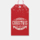 Un Noël traditionnel et élégant et une étiquette de cadeau Bonne Année présentant des flocons de neige qui tombent et un beau design typographique Joyeux Noël. Le dos comporte un panneau pour que vous puissiez écrire votre message spécial de la saison. Vous pouvez même personnaliser la couleur de fond sur le devant pour correspondre à votre couleur de vacances préférée.