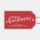 Balise cadeau de vacances moderne rouge et blanc avec la mention 'Joyeux Noël' en blanc style de police de script moderne avec nom de famille en blanc style de police moderne sans serif sur arrière - plan rouge. Cliquez sur le bouton customiser pour personnaliser le design en choisissant la couleur qui vous plaît et même ajouter votre propre texte.