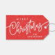 Moderne Joyeux Noël Calligraphie Script Neige Rouge Tags cadeaux