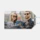 Étiquette cadeau de Noël de Noël Lettering Script moderne Design présente une image de votre choix avec une superposition sombre sur le fond avec le texte blanc 'Joyeux Noël, et une Bonne Année, et nom de famille. Au verso, vous pouvez ajouter une deuxième photo, personnaliser le message et les noms. L'arrière - plan rouge festif peut être changé en n'importe quelle couleur.