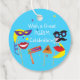 Cadeaux de fête pour enfants pour Pourim Decoration pour étiquettes de faveur. Traduction de l'hébreu : Joyeux Pourim ! Affiche de la fête juive de Pourim, cadre décoratif vintage et texte. Panier de cadeaux de Pourim. Étoiles de David, cookies traditionnels Hamantaschen, crécelle jouet bruiteur, ballons, musiciens, masques, panier de Pourim sur fond de confettis de fête. Texte de vœux : "Je vous souhaite une merveilleuse célébration de Pourim !" Carnaval, Mascarade, Festival, Fête d'enfants, Israël. Conception vintage pour artisanat et fournitures de fête > Fournitures de fête > Faveurs et emballages > Étiquettes de faveur. Conception avec modèle de texte. Personnalisez-les en ajoutant un nom ou un texte de vœux.