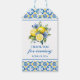 La Dolce Vita Citron Étiquettes de faveur pour la douche de la mariée avec motif de fichier bleu et jaune.