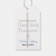 La première Sainte Communion de est écrite dans un élégant texte argenté contre blanc croustillant. Une simple croix argentée aux accents dorés est à l'avant et à l'arrière des étiquettes. Personnalisez avec le nom de l'enfant dans le script bleu cornflower, et la date dans le texte noir. Conception originale © TamiraZDesigns.