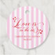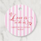 Voici des étiquettes de faveur de party L'amour est dans l'air cœurs roses rouges Baby Shower !