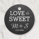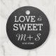 L'amour est un favori doux des autocollants parfaits pour vos cadeaux de mariage. Personnalisez les autocollants de tableau noir rustique avec les noms des mariés et la date du mariage.