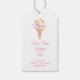 Cette étiquette de faveur d'arrosage de mariée sur le thème de la glace est décorée de fleurs aquarelles et d'un cône de glace.