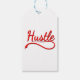 Le mot "hustle" en rouge avec des ombres tombantes en noir. Design original.
