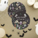 Balises cadeau de faveur noire mignonnes pour les faveurs baby shower Halloween. Le design du cottagecore présente des illustrations florales d'automne moody de plantes venimeux comme la belladone, la pruche et les pavots noirs. De mignons fantômes de champignons volent autour des fleurs. Le texte peut être facilement customisé avec les détails de votre baby shower.