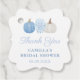 Ces étiquettes de faveur découpées avec élégance présentent des citrouilles bleues et blanches peintes à la main et des pots de gingembre initialement peints à l'aquarelle (par moi) puis numérisés et transformés en un motif répétitif.