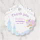 Les Favor Tags présentent une mignonne licorne aux ailes entourées de jolies illustrations d'un château magique, des nuages et une guirlande festive.