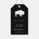 Offrir des cadeaux faits maison, mais souhaitez le faire de manière ludique ? Cette étiquette-cadeau amusante présente un buffle blanc sur fond noir avec le texte facultatif "RETOUR AUX SOURCES" (ce cadeau a été fait maison avec du papier, des ciseaux et de la salive) ainsi que vos vœux de Noël et vos noms. Le verso présente un motif à carreaux buffle noir et blanc. Vous n'avez pas besoin d'être un bûcheron pour aimer ce design tendance à tout moment de l'année ! Recherchez l'ID602 pour voir d'autres options de couleur et produits avec ce design.