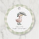 This adorable circular baby shower favor tag features our cute watercolor duckling in sage green rain boots and hat, holding a gingham umbrella - perfectly framed by a soft sage gingham border. Personalize with the mama-to-be's name on the front and customize a message on the back.