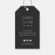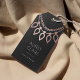 Marquez votre entreprise de conception de bijoux avec ces élégantes étiquettes pendantes en gris charbon riche avec accents or rose. Le design présente une illustration ornée d'un collier de style art déco en haut en feuille d'or rose, avec deux lignes de texte personnalisé en dessous. Ajoutez les coordonnées de votre joaillier à l'envers, ainsi que votre nom d'utilisateur des médias sociaux.