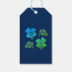 Green Blue Lucky Shamrock Clover Happy Birthday Gift Tags. Quatre shamrocks verts et bleus dessinés à la main sur un arrière - plan bleu marine. Porte-vêtements avec quatre feuilles pour la chance.