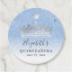 Créez vos propres étiquettes de cadeaux de quinceañera élégantes et personnalisées avec un simple modèle DIY. La belle œuvre d'art florale et le design de Raphaela Wilson présentent un faux diadème / couronne de princesse argent métallisé avec des confettis de papillons scintillants sur un motif doux de roses aquarelles bleu bébé. Au dos, la calligraphie script et les polices modernes sont en blanc, mais cela, ainsi que les couleurs de fond, peuvent être modifiés pour mieux correspondre à la décoration et aux fleurs de votre thème de fête. Ces étiquettes de cadeaux de couronne élégantes personnalisées peuvent compléter les mariages royaux, une quinceañera / quince argent et bleu bébé, une fête d'anniversaire sweet 16 sur le thème de l'hiver, une baby shower de princesse Cendrillon pour fille, une douche de mariée et d'autres événements marquants... Montrez à vos invités amour et gratitude avec ces étiquettes de remerciement personnalisées qu'ils pourront conserver en souvenir longtemps après le grand jour. Elles peuvent également ajouter une belle touche à vos cadeaux de fête ! Catégorie : cadeaux de quinceañera bleu clair ; étiquettes de cadeaux de mariage rose bleu poussiéreux