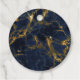 Mariage merci préférez les étiquettes avec un élégant et élégant arrière - plan de marbre bleu marine et or. Couché sur le dessus est un cercle avec une fausse bordure en feuille d'or avec votre texte personnalisé à l'intérieur.