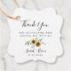 Élégant bouquet floral aquarelle de tournesols et d'eucalyptus, étiquettes de remerciement de mariage. Le verso de l'étiquette présente une couleur bleu marine uni.