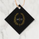 Feuille de couronne ovale en or sur les marques noires de mariage ou de remerciement. Ajoutez les initiales monogrammes de vos couples et un message de remerciement au contraire. Petite étiquette cadeau classique en noir et or et blanc. Autres couleurs et articles mariages correspondants disponibles. © Dessin et dessin de la feuille d'origine par Sarah Trett pour www.mylittleedenweddings.com sur Zazzle.