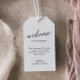 Ces élégantes étiquettes mariage de calligraphie noire sont parfaites pour un mariage simple. Le design neutre présente un tag cadeau minimaliste décoré avec une typographie romantique et fantaisiste. Personnalisez les étiquettes avec l'emplacement de votre mariage, une brève note de bienvenue, vos noms et la date du mariage. Ces étiquettes sont parfaites pour les mariages de destination et les sacs de bienvenue des clients de l'hôtel.