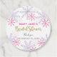 Étiquettes de faveur de Baby Shower de mariage d'hiver merveilleux avec des flocons de neige roses et violets. Comprend une belle police de caractères script en design de texte doré et pailleté faux. Avoir un thème de mariage d'hiver merveilleux est parfait si c'est autour de décembre ou en hiver. Jolies étiquettes de faveur de Baby Shower de mariage. Illustration numérique par Kristine Lee. Pour plus, visitez www.kristineleedesigns.com