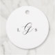 Balises de mariage de style classique avec un design simple mais élégant avec "merci" dans une calligraphie élégante avec vos noms et votre date. Le dos a votre trois monogramme initial. Utilisez le modèle pour ajouter votre message personnalisé.