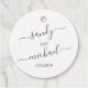 Ce design comprend une étiquette de faveur de mariage, avec un style simple, noir et blanc, avec un script minimaliste de calligraphie et un style élégant, classique, minimal, basique