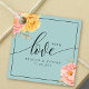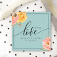 Exprimez votre gratitude avec ces étiquettes de faveur de mariage élégantes à la fleur de pivoine et rose. Le design délicat à l'aquarelle présente des fleurs douces roses et jaunes sur un fond bleu sarcelle, créant une atmosphère romantique et charmante. Personnalisez les étiquettes avec vos noms et date de mariage pour un toucher unique et sincère.