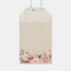 Modèle d'étiquette de cadeau de mariage fleuri rustique toile de jute dentelle.