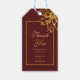 Balise cadeau bordeaux foncé avec effet or détail floral. La couleur Arrière - plan peut être modifiée. Tout le texte peut être modifié pour convenir à votre occasion. Des articles de papeterie et des produits correspondants sont disponibles dans notre boutique zazzle.