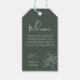 Belle étiquette cadeau minimaliste avec un design d'agencement floral, disponible en deux couleurs. Cette conception fait partie d'un ensemble qui comprend des invitations de mariage avec cartes RSVP assorties, autocollants, carte de détails, enveloppes, et plus encore. Vous avez une demande de personnalisation ? Contactez-nous et nous serons heureux de vous aider.