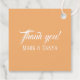 Petites étiquettes de faveur avec ficelle pour vos boîtes de faveur ou autres contenants de cadeaux de faveur pour votre mariage ou douche de mariée et comportant l'image photo d'une fleur de plante oiseau de paradis orange sur l'avant de l'étiquette. Le dos de l'étiquette est de couleur orange clair. Parfait pour les célébrations tropicales de l'île ! Personnalisez vos étiquettes de faveur en modifiant les noms au dos de l'étiquette. Sélectionnez la forme de votre étiquette de faveur. Conçu pour coordonner avec notre collection de mariage floral tropical Bird of Paradise.