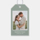 Ces belles étiquettes cadeaux de Mariage photo moderne avec une bordure verte d'eucalyptus sont parfaites pour attacher les faveurs à votre fête de fiançailles, douche aux couples, dîner de répétition ou réception de mariage. Choisissez une photo qui vous plaît reflète votre amour l'un pour l'autre. Customisez-les avec votre photo, vos noms et votre date. Ils seront fabuleux sur vos faveurs d'invités !