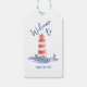 Voici une étiquette cadeau pour les sacs cadeau et les sacs de faveur Cape Cod. L'image de la maison lumineuse est sur le devant avec un accueil bienvenu. À l’arrière, il y a une zone où vous pouvez ajouter votre message personnel.
