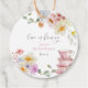 "L'amour est en train de se préparer" en écriture élégante avec le nom de l'événement et la date encadrés de fleurs sauvages aquarellées et de tasses à thé roses charmantes. Collection coordonnée disponible dans la boutique Zazzle Adore Paper Co.