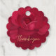 Étiquettes de faveur de shower de mariage sur le thème de la mariée en fleurs avec des roses en rouge et bordeaux avec motif floral et botanique or. Un fond parfait de couleur or et blanc cassé avec arrangement floral rouge