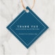 Moderne minimaliste très simple graphique marine bleu avec un contour blanc carré et texto mariage faveur merci tags. Idéal pour une mariage simple, minimale ou moderne. Personnalisez avec vos propres noms, date mariage et merci. Autres mariages et événements correspondants disponibles. Conçu par www.mylittleedenweddings.com