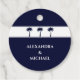 Ajoutez une touche d'élégance balnéaire à votre journée spéciale grâce à ces étiquettes personnalisées de mariage côtier. Avec un design graphique de trois palmiers bleu marine chic et des bandes bleues, qui s'adonnent à un arrière - plan blanc et bleu chic, ces étiquettes capturent parfaitement l'essence d'un palmier mariage au bord de la mer. La combinaison d'élégante typographie et de gracieuses polices de script de calligraphie crée un look élégant et sophistiqué, idéal pour un mariage de plage tropicale. Parfait pour s'attacher à vos faveurs de remerciement, ces étiquettes ajoutent une ambiance côtière charmante que vos invités aimeront.