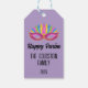 Étiquettes-cadeau Masque pourpre avec plumes Nom de famille