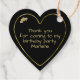 Utilisez ces élégantes étiquettes suspendues pour dire, "Merci pour venir", à votre événement spécial. Personnalisez facilement le texte à l'avant et à l'arrière avec les modèles fournis. Le design numérique sur la colline à l'avant a un motif de nombre aléatoire noir et or avec le numéro d'or 100 répété dans des tailles et angles variés. Il y a une forme de coeur bouffante en or au centre, devant pour votre texte "Merci". Le dos a de la place pour, "Merci d'être venu à ma fête d'anniversaire. [nom]". Une idée amusante pour les faveurs de fête pour votre fête du centenaire préféré, et pour toutes les occasions ou célébrations du centenaire où vous présentez le numéro cent; il suffit de changer le texte pour correspondre à l'événement.