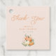 Baby shower d'automne merci de privilégier les étiquettes avec aquarelle orange et blanc citrouilles et fleurs roses. "Merci" est en orange cursive et serif police, sur un arrière - plan rose. Personnalisez-vous avec le nom et la date de la douche de la future mère.