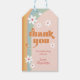 Ces étiquettes de remerciement pour l'anniversaire de cette super fille sont une façon amusante d'ajouter une note de remerciement à votre faveur de fête. Le design des années 70 est agrémenté de couleurs boho, de marguerites blanches et d'une police de style rétro. Personnalisez avec un court message et le nom de la fille d'anniversaire.