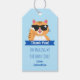 Célébrez la journée spéciale du chat cool avec le design d'anniversaire de ce chat Cool enfant. Cette étiquette-cadeau présente l'illustration d'un mignon chat tabby orange avec lunettes de soleil contre un arrière - plan pastel clair. L'inverse est un motif d'étoiles blanches.
