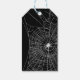 Utilisez des étiquettes cadeaux personnalisées pour votre fête d'Halloween. Le design présente le texte "merci d'être passé" dans une police de caractères manuscrite avec des toiles d'araignée comme bordure.