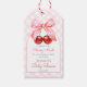 Ajoutez une touche douce et élégante à vos préférences de baby shower avec ces étiquettes Merci Baby shower cerise. Doté d'une charmante conception cerise et arc rose avec un arrière - plan en vichy, ce Gift Tags est parfait pour un thème coquette, baies, ou bébé fille douche thème. Partie d'une collection. Éléments correspondants disponibles.