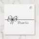 Simple moderne noir et blanc personnalisé MOM-TO-BE'S NAME Merci de baby shower tags préférés. Avec de mignons petits pieds bébé et une typographie de script noir avec un arc de style actuel et le mot Merci sur le dos.