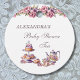 Célébrez la future maman avec cette élégante marque de Baby shower personnalisée Tea Party ! Ces étiquettes de faveur présentent un design fantaisiste de fleurs vertes et lilas féminines entourant une charmante théière et un stand de gâteaux ornés de délicieux gâteaux à thé. Une délicate tasse de thé et une soucoupe, décorée de motifs floraux complexes, apportent une touche de grâce à un arrière - plan blanc immaculé. Parfaits pour remercier les invités, ces étiquettes de faveur capturent l'essence enchanteresse d'une fête de thé bébé ou pique-nique, mêlant élégance avec un soupçon de fantaisie. Un beau souvenir pour une journée spéciale remplie d'amour et de thé.