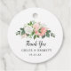 Elégant rose rose rose floral mariage merci cher tag. Les roses roses roses et les fleurs blanches d'hydrangée sont nichées dans de doux feuilles verts sauge. Ils forment un spray en haut du tag de remerciement du mariage. Le Merci est écrit dans un texte très populaire. Les noms des couples mariages sont écrits ci-dessous dans une police serif classique. La date du mariage suit. Tout le texte peut être facilement changé. Ce merci vous préférez les coordonnées de l'étiquette avec la Blush Pink and White Floral Mariage Collection.