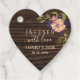 Rustique, élégant, mariage en bois marque de faveur avec des fleurs roses aquarelle et citation romantique : infusé d'amour.