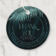 Optez pour un look éblouissant, éblouissant et glamour en utilisant les pièces de cette suite mariage comme indiqué, avec des bijoux en cascade des feuilles de palmiers incrustés de diamants ou supprimer les couches de bijoux pour un look un peu plus conservateur. Cet ensemble présente des feuilles dans un pastel chatoyant turquoise contre un arrière - plan turquoise et texturé plus foncé. La balise de faveur "Merci" mariage montrée ici a une bordure supérieure de feuilles pétillants, une police serif élégante avec les noms de la mariée et du marié et la date du mariage. Entrez facilement vos coordonnées en utilisant le modèle fourni. Affichez le lien de collection sur cette page pour voir tous les éléments correspondants dans ce bel ensemble ou recherchez ID830 pour voir d'autres options de couleur pour cette conception.
